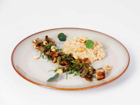 Ingrédients (pour 4 personnes) : 350g de riz Arborio ou Carnaroli 1 verre de vin blanc ½ oignon 1 gousse d’ail 500g de cèpes 1L de bouillon de volaille Ariake…