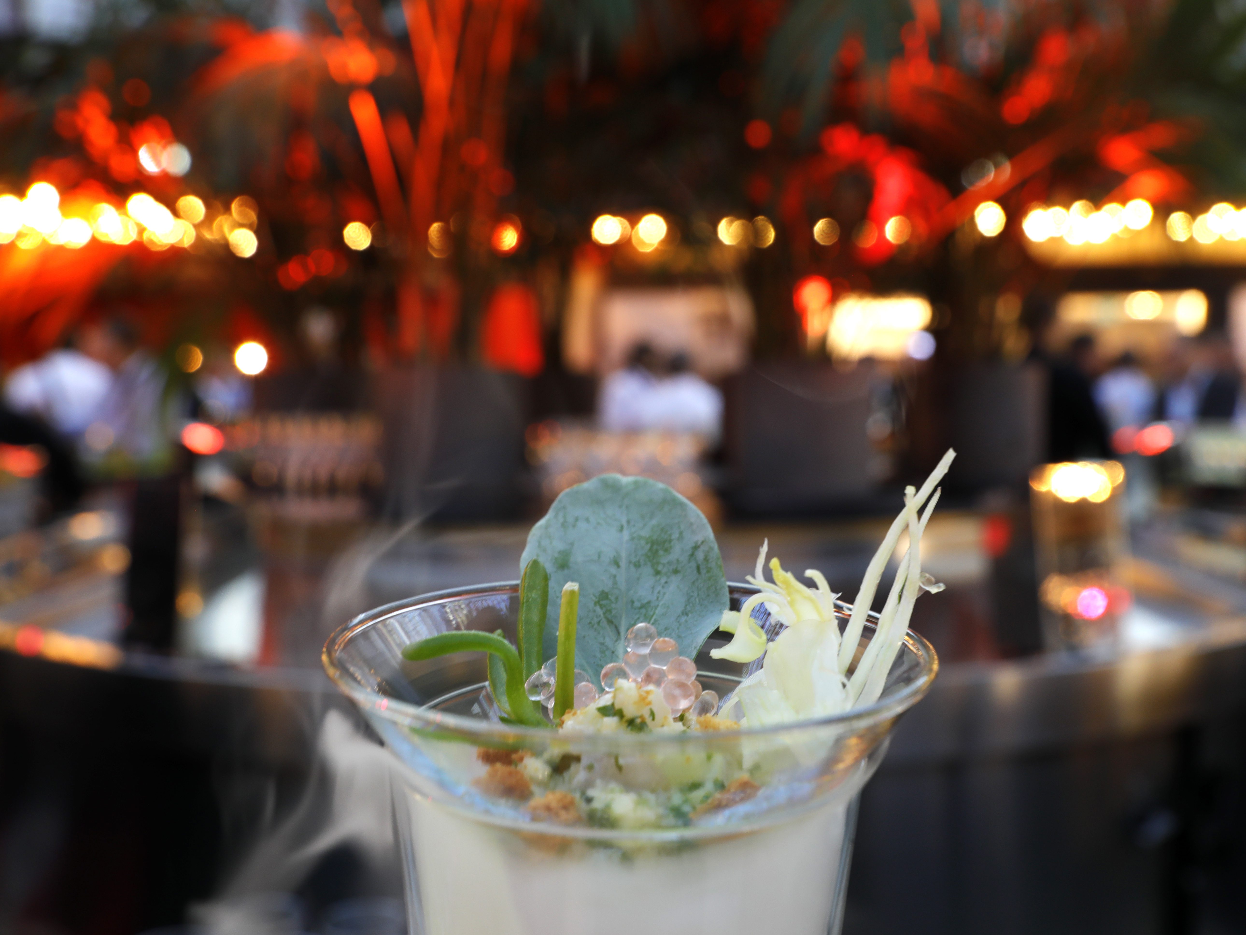 Pour agrémenter cette soirée propice à l’échange et empreinte de convivialité, nos chefs ont cuisiné, sous les regards curieux et réjouis, des recettes mettant à l’honneur le terroir français : dégustation de foie gras de canard mi-cuit, fumerolle de bar de ligne, huîtres de Bretagne et de Normandie, poêlée de girolles et sa glace à la moutarde de Meaux ou encore magret de canard IGP accompagné de pêches du Rousillon…