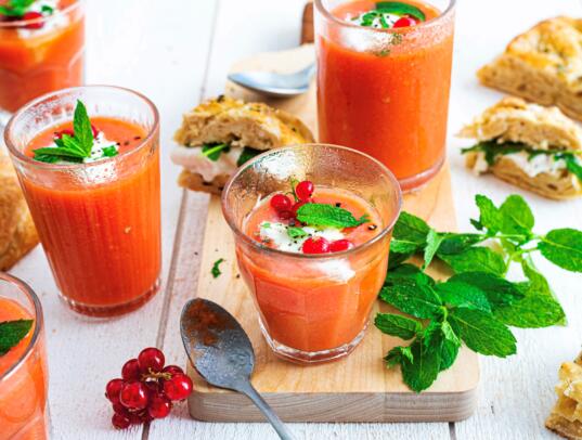 Recette signée par Astrid Fronteau Ingrédients ( pour 6 personnes) : 6 tomates cœur de bœuf Terroirs d’avenir 400 g de pastèque Terroirs d’avenir 1 demi concombre Terroirs d’avenir 125 g de groseille Terroirs…