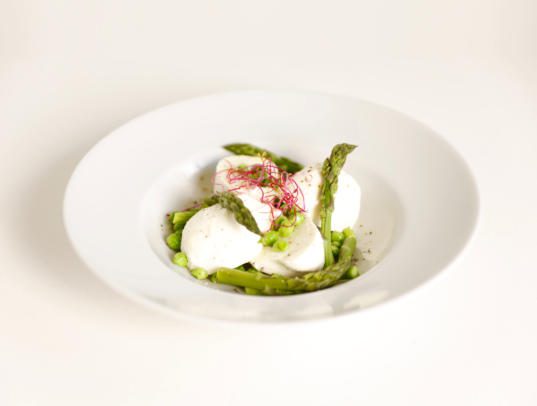 Ingrédients (pour 6 personnes) : 6 boules de mozzarella di bufala Terra Candido (environ 130g l’unité) 400g de petits pois primeurs frais 12 asperges vertes Huile d’olive Kalios 6 tranches de…