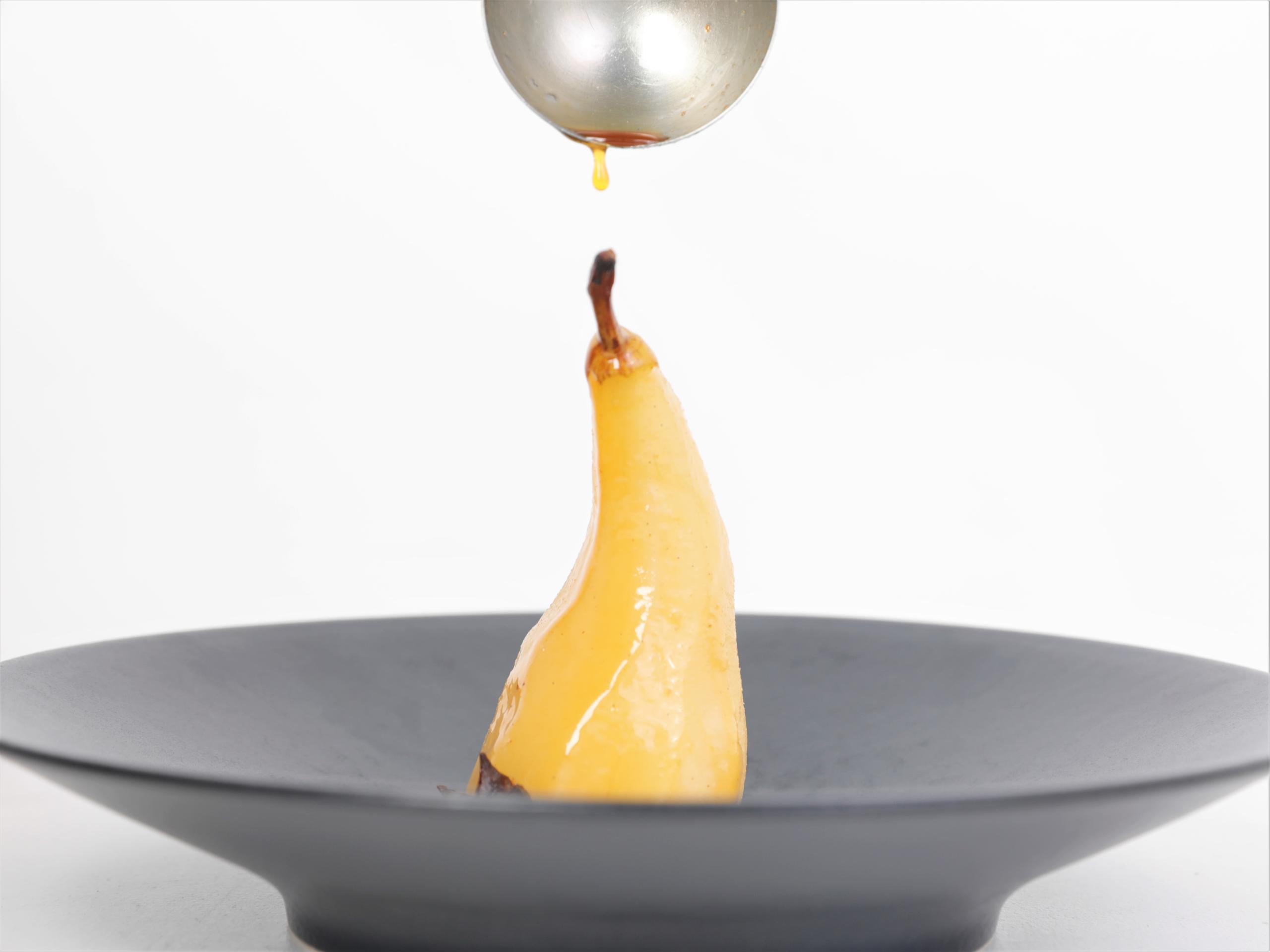 Peler les poires, les déposer dans le sirop et remettre la casserole à feu doux. Faire pocher environ 15 min.