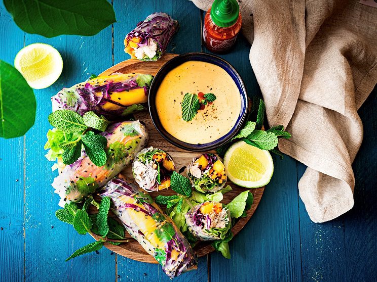 Conservés entiers ou coupés en biseau, déposer les rouleaux sur une assiette colorées accompagnés d’un petit bol de sauce. Servir et déguster.