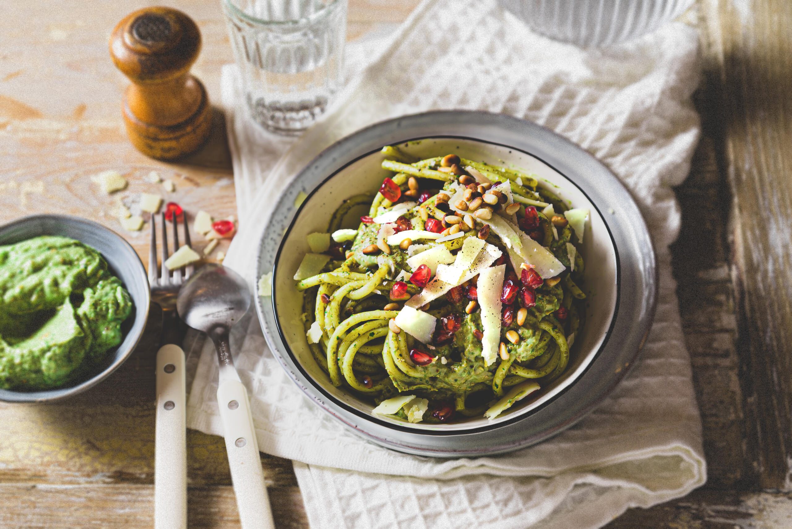 Servir avec des pignons de pins, de la grenade et du parmesan fraîchement râpé sur le dessus !