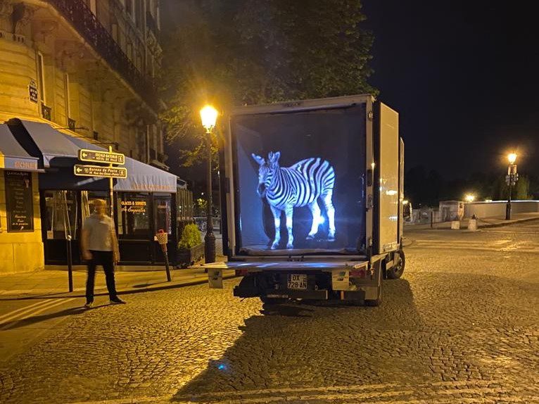 Fruit d’une belle rencontre avec le scénariste Alexandre Zenatti, nous sommes heureux de vous présenter le projet « Rêver les yeux ouverts », ou comment la nature reprend ses droits dans les rues de Paris confiné… Des hologrammes animaliers embarqués à bord d’un camion Trait’Tendance, sillonnent, depuis quelques jours, les rues de Paris offrant un spectacle fascinant et gratuit aux riverains de tous âges.
