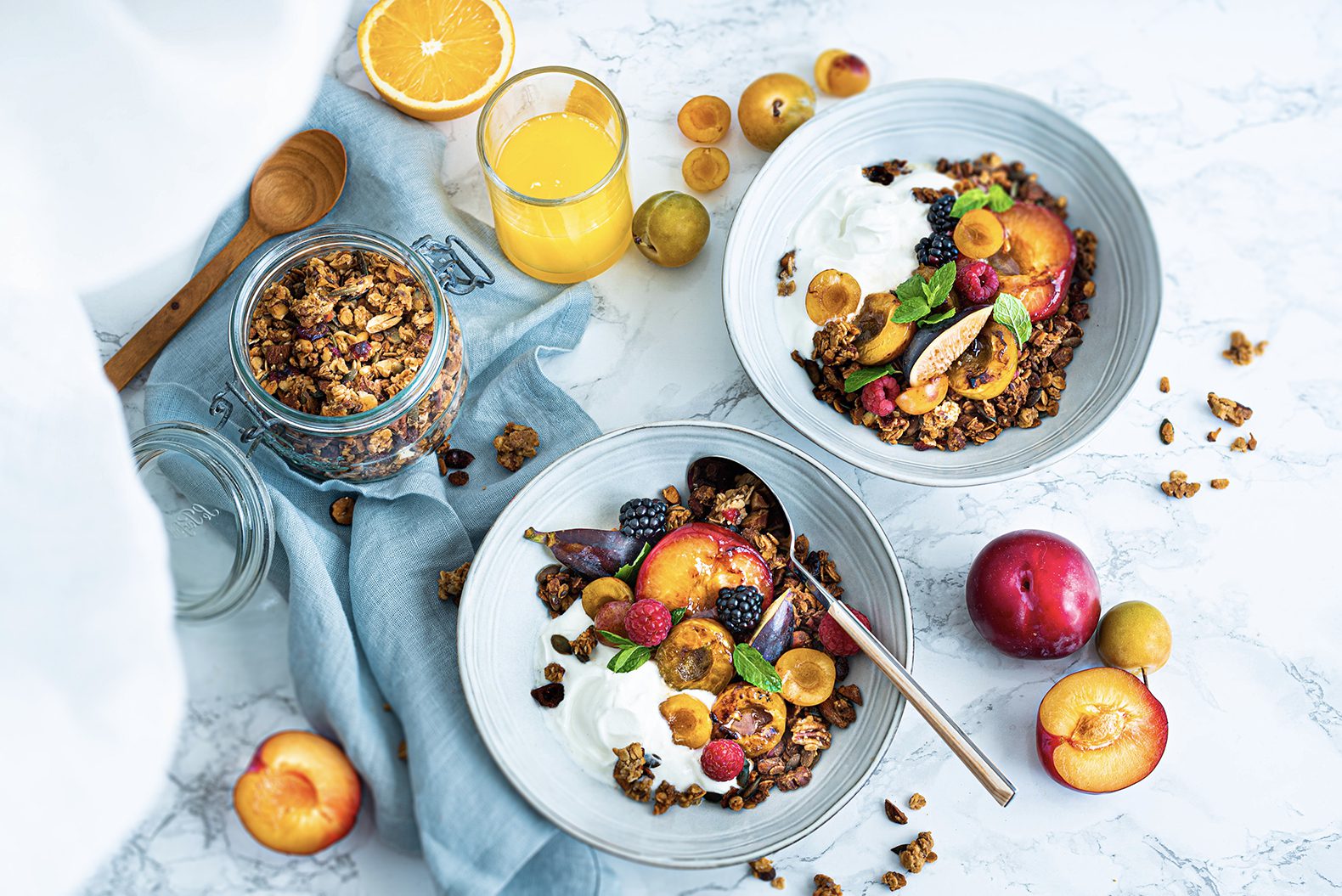 For a complete breakfast plate, place a portion of Jean-Yves Bordier yoghurt and fresh seasonal fruit in a large bowl.