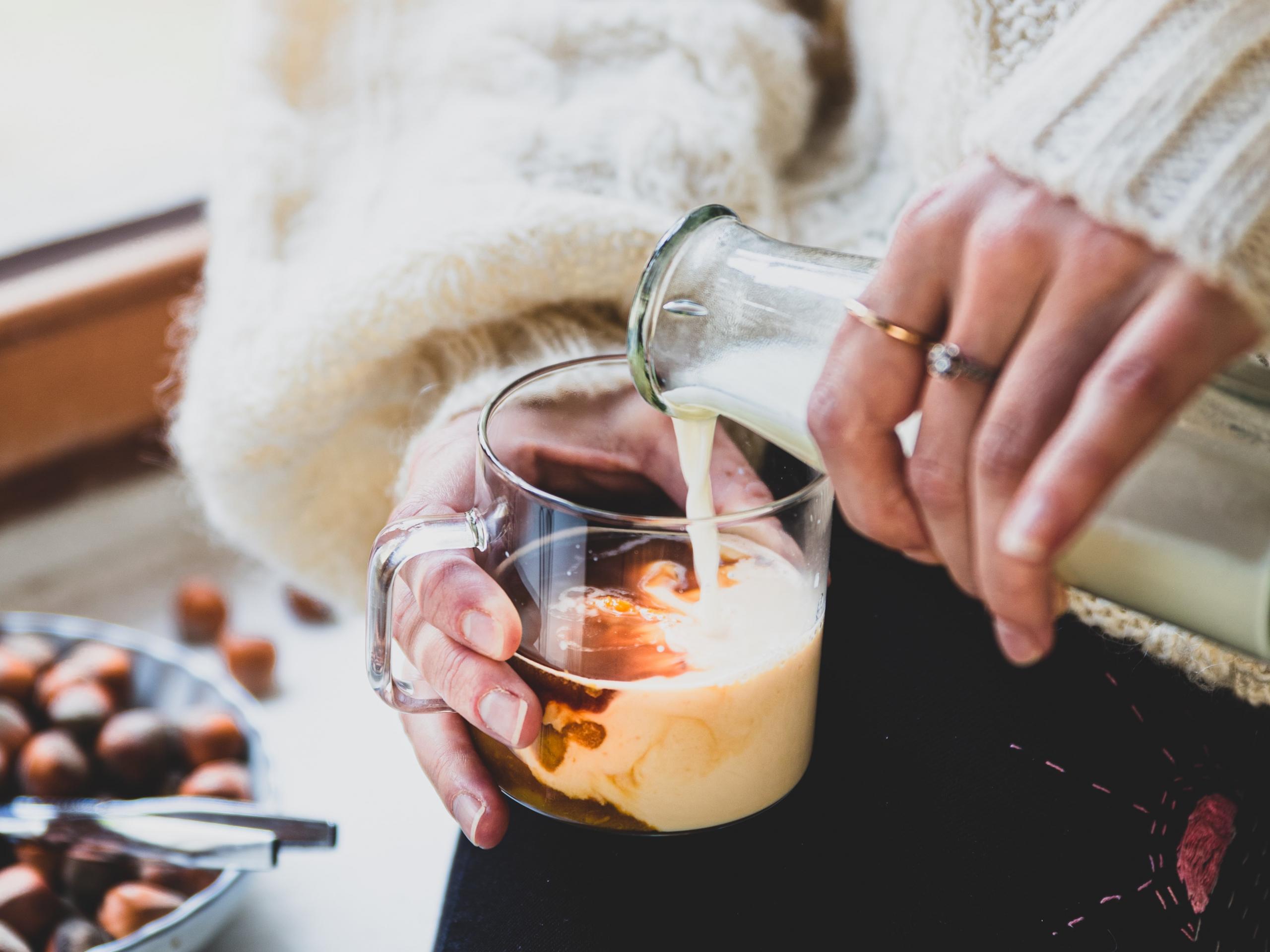 Start by blending the pumpkin purée in a blender to obtain a fine texture, then straining off any remaining chunks. Mix the purée with the honey and spices, then pour into a pretty cup. Top up with espresso and stir. Finish with a topping: your choice of hot milk foam or whipped cream!