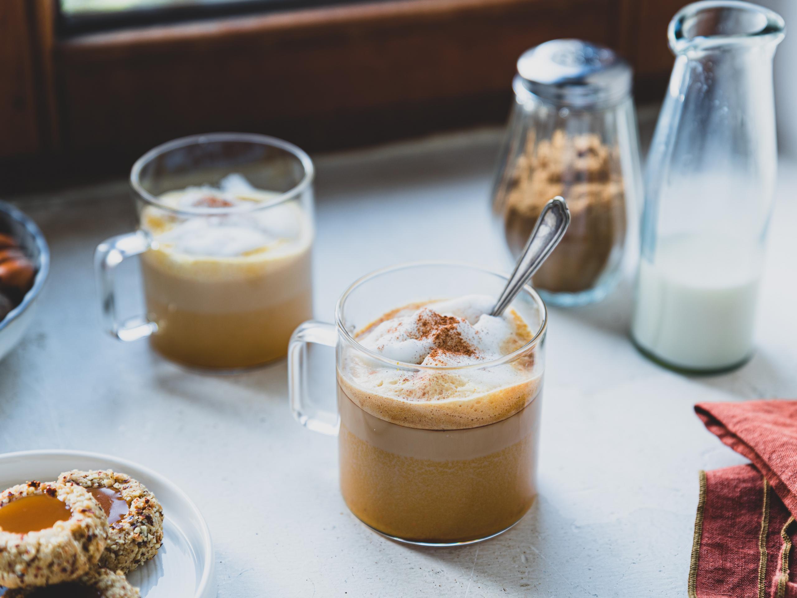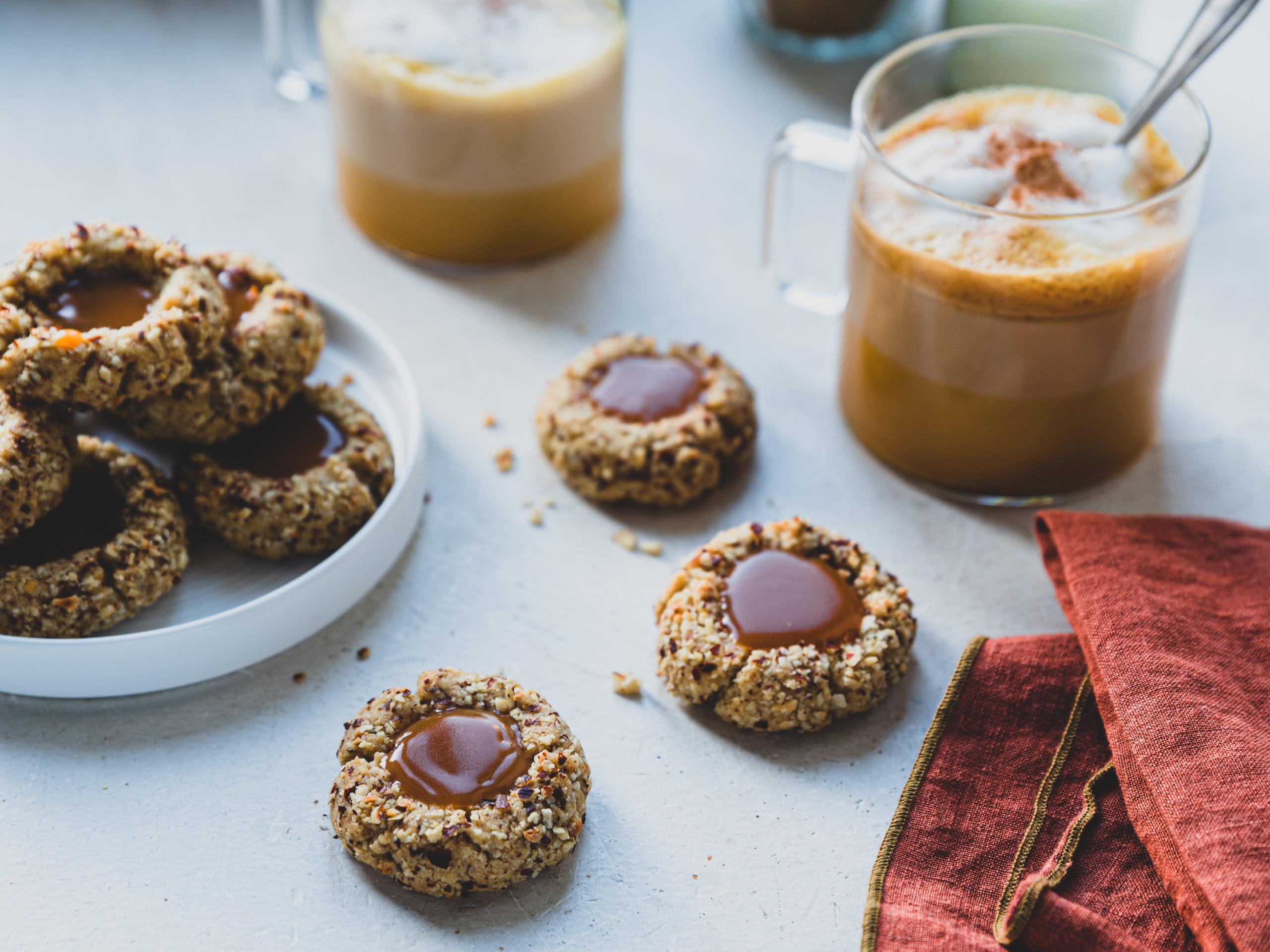 Start by making the crunchies, so you can serve them with the hot Pumpkin Latte!