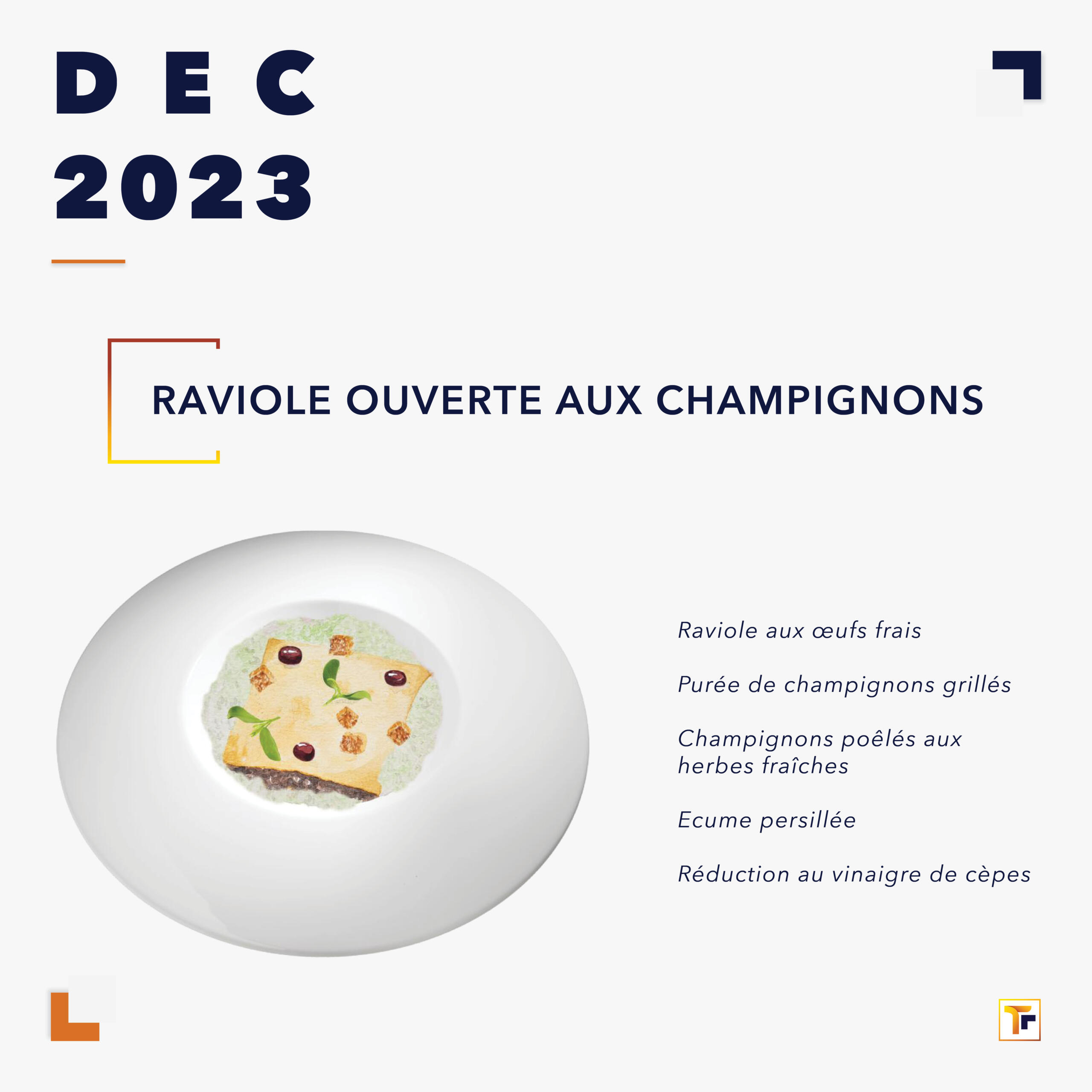 Topped with a parsley foam, our open raviole, a favorite with vegetarians, is perfect for your end-of-year events.